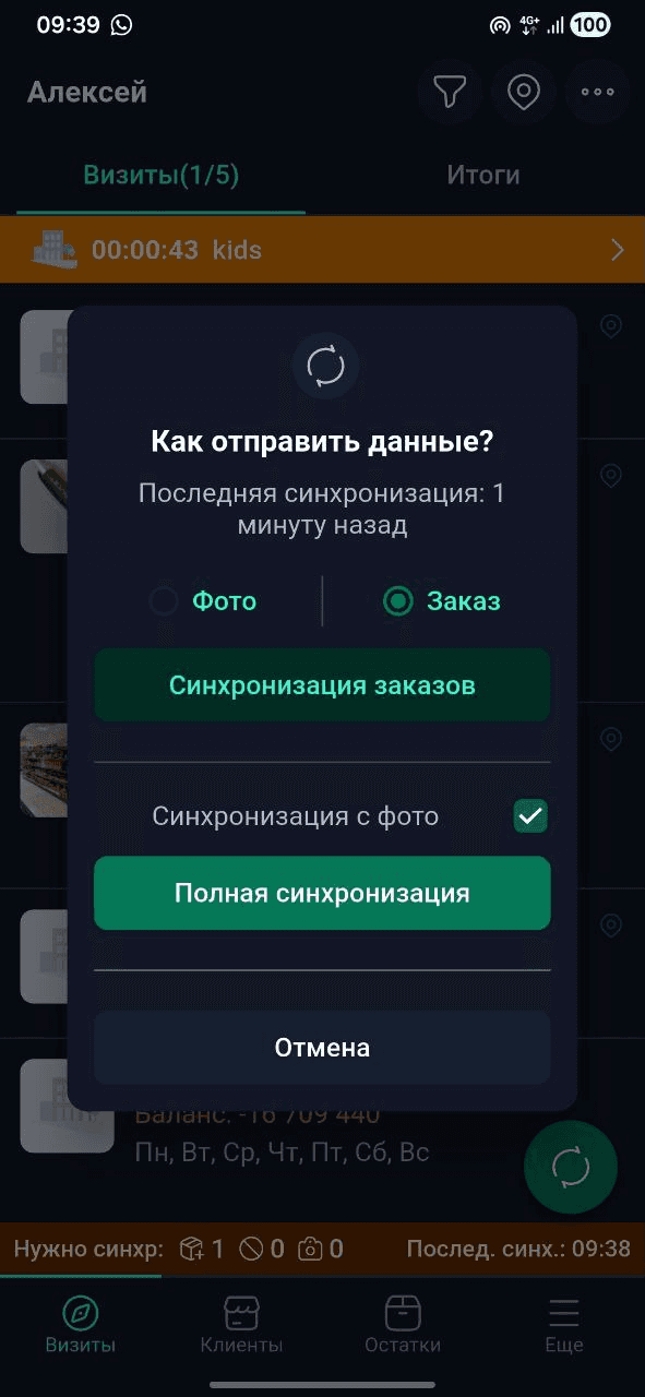 Bosh sahifaga - sinxronizatsiya tugmasiga “Faqat buyurtmalarni sinxronizatsiya qilish” imkoniyati qo'shildi: